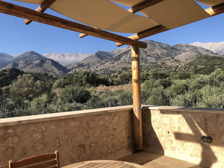Vom Balkon aus hat man einen fantastischen Blick auf die weißen Berge sowie auf die Bucht von Souda.